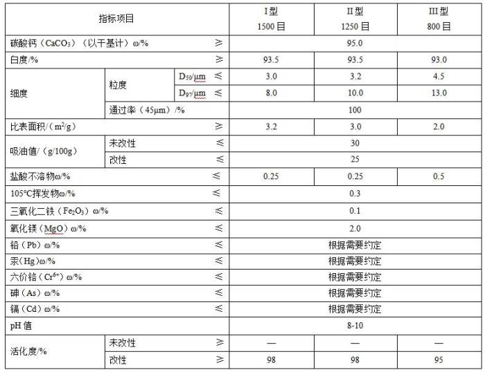 密封胶、胶粘剂用纳米碳酸钙推荐指标
