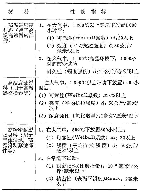 日本1981-1990年"次世代技术开发"计划中规定达到的结构陶瓷性能指标