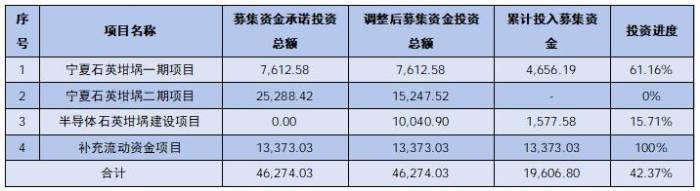 值得关注的是,公司曾于2025年3月19日召开第四届董事会第六次会议、第四届监事会第四次会议,2025年3月24日至2025年3月28日以简化程序召开“欧晶转债”2025年第一次债券持有人会议,2025年4月7日召开2025年第一次临时股东大会,审议通过了《关于变更部分募集资金用途并新增募集资金投资项目的议案》,同意公司将原募投项目“宁夏石英坩埚二期项目”募集资金投资额25,288.42万元中调出募集资金10,040.90万元,用于新增募投项目“半导体石英坩埚建设项目”。