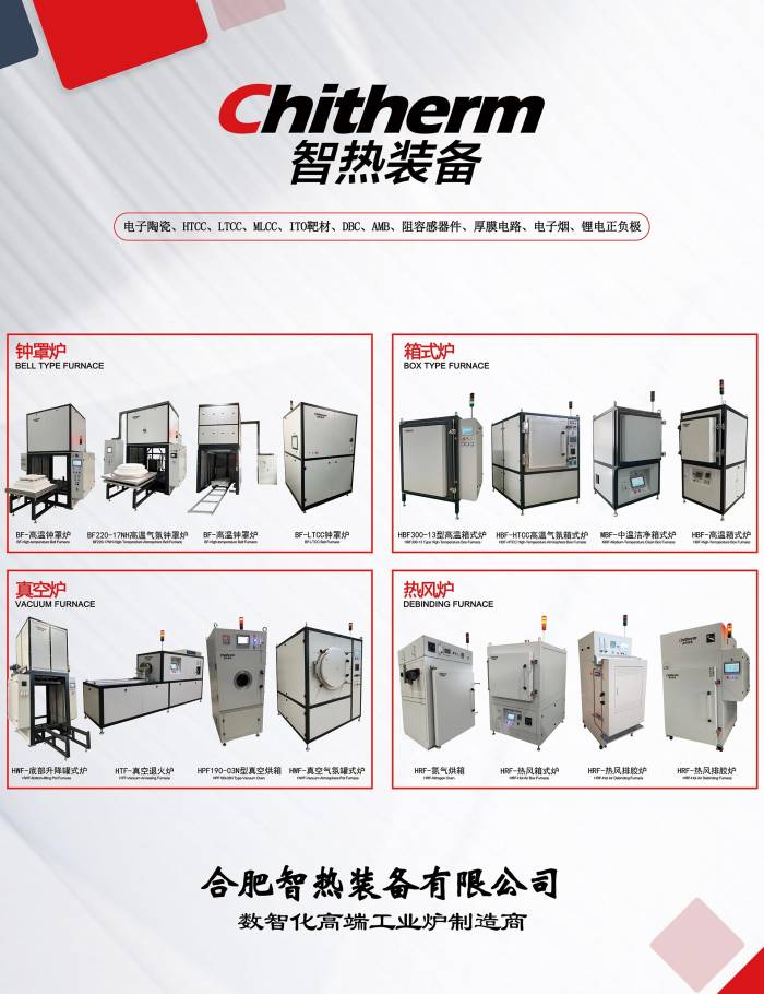 产品包括钟罩炉、热风炉、箱式炉、管式炉、真空炉、台车炉、回转炉、网带炉、推板炉等,广泛应用于先进陶瓷、电子元器件、厚膜电路、增材制造、粉末冶金、新能源、光伏等领域。适用于ITO靶材、MLCC/HTCC/LTCC、陶瓷滤波器、磁性材料、CIM/MIM、锂电池正负极等材料的热处理工艺以及其它各种新材料的预烧、排胶、脱脂、烧成、烘干、热处理、固化、陶瓷金属化等工艺。