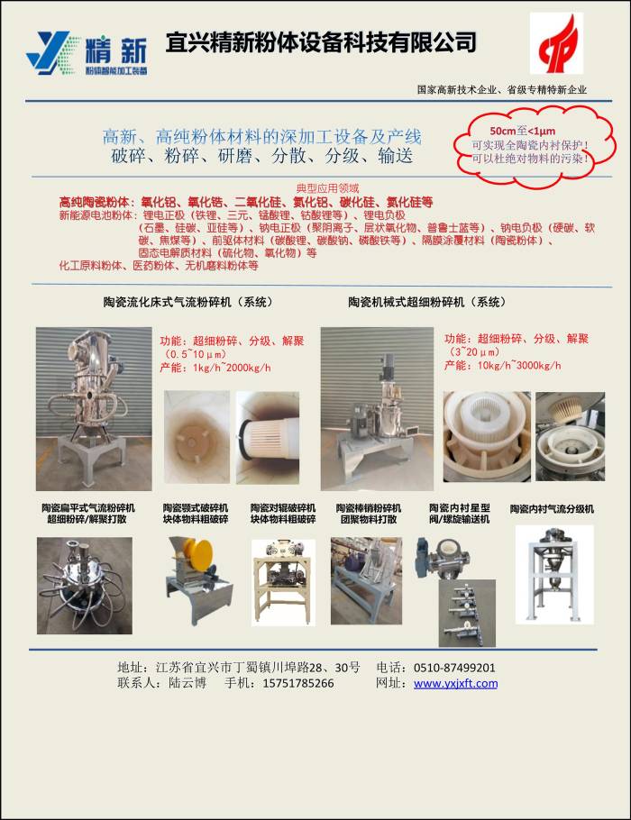 第八届新型陶瓷技术与产业高峰论坛暨展览会将于 2025年12月24-25日在广东东莞举办。宜兴精新粉体设备科技有限公司作为参展单位邀请您共同出席。