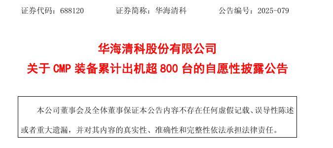 中国粉体网讯 近日,华海清科股份有限公司(以下简称“华海清科”)发布公告,公司化学机械抛光(CMP)装备出机累计超800台,涵盖公司Universal-H300、Universal-S300等多款主力机型和最新款机型,不仅全面覆盖逻辑、3DNAND存储、DRAM存储等主流产品线,更成功切入大硅片、第三代半导体、CIS、MEMS、MicroLED以及先进封装等领域头部客户供应链,已实现国内主流集成电路制造产线的全覆盖和批量化应用。