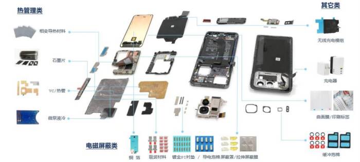 思泉新材目前已拥有石墨散热膜、石墨散热片、导热垫片、导热凝胶、散热风扇、热管、VC、3D VC、风冷散热模组、液冷散热模组等从材料到器件到模组较为完整的热管理产品体系,可以针对电子产品不同的散热需求提供系统化的散热解决方案。公司产品可广泛应用于手机、笔记本电脑、平板电脑、智能可穿戴设备等消费电子终端,以及新能源汽车、储能、服务器、通信设备、医疗设备、无人机、机器人等中高端散热领域。