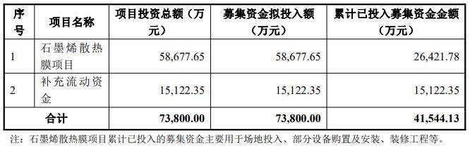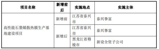 锦富技术在石墨烯散热材料领域积极布局。2025年10月,公司调整石墨烯散热膜项目布局,新增穆棱市实施地点。