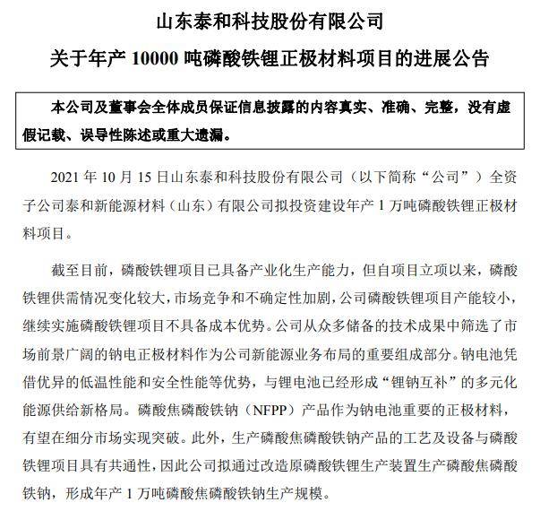 中国粉体网讯 12月30日,泰和科技发布公告,宣布调整其新能源材料项目方向。