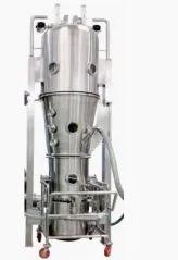 物料粉末粒子,在原料容器(流化床)中呈环形流化状态受到经过净化后的加热空气预热和混合,将粘合剂溶液雾化喷入,使若干粒子聚集成含有粘合剂的团粒,由于热空气对物料的不断干燥,使团粒中水分蒸发,粘合剂凝固,此过程不断重复进行,形成理想的、均匀的多微孔颗粒。