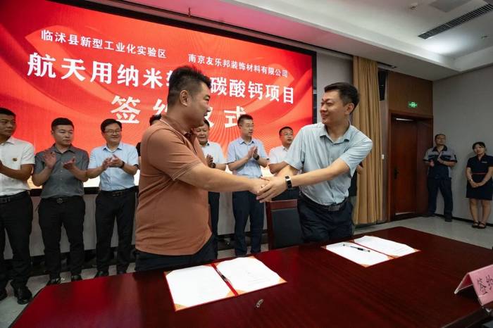 2024年6月28日,南京友乐邦装饰材料有限公司航天用纳米轻质碳酸钙项目签约仪式在山东省临沂市临沭县新型工业化实验区举行。据了解,南京友乐邦装饰材料有限公司成立于2019年2月,位于南京市江宁区,主要从事装饰材料、防水材料及石膏制品的销售与生产,目前钙业方面控股有山东中钙纳米材料有限公司。