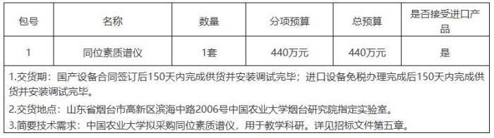 项目名称:中国农业大学烟台研究院采购同位素质谱仪项目