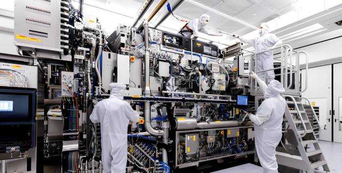 在半导体制程中,光刻机负责将设计好的电路图从掩膜版转印到晶圆表面的光刻胶上,通过曝光、显影将目标图形印刻到特定材料上。芯片在生产中需要进行20-30次的光刻,先进技术节点的芯片制造需要60-90步光刻工艺,耗时占到IC生产环节的50%左右,占芯片生产成本的1/3。因此,光刻机则成为了前道工序九大设备之首,在芯片生产线总投资的占比约为20%。