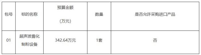 超声波雾化制粉设备 招标项目的潜在投标人应在登陆中招联合招标采购平台(网址:www.365trade.com.cn)购买并下载招标文件获取招标文件,并于2026年01月28日 09点30分(北京时间)前递交投标文件。
