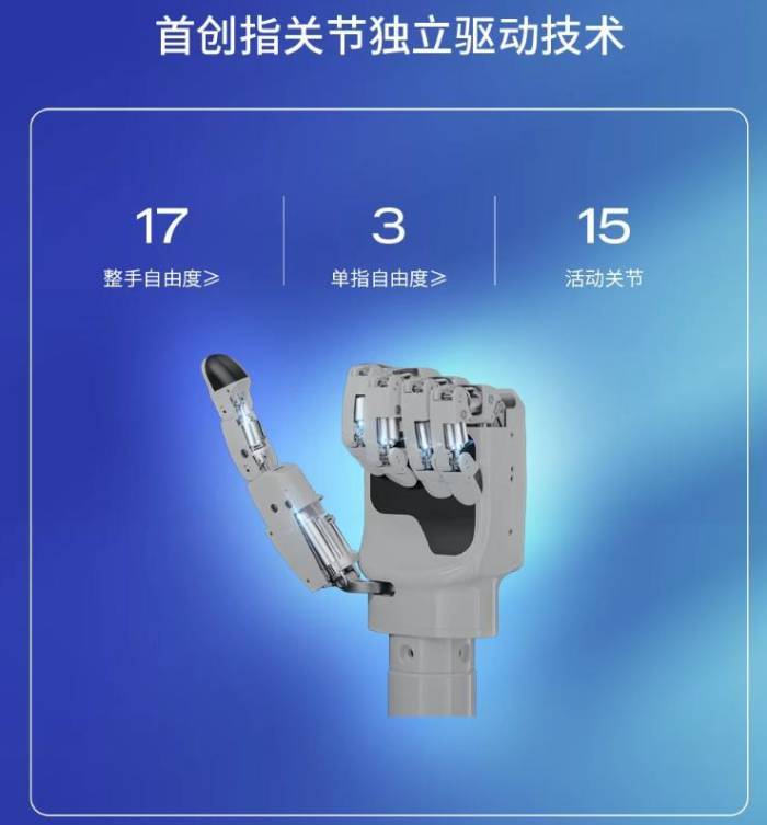 2024年,公司在深圳高交会上首次发布全球首创指关节内置全驱动力单元的灵巧手产品。该产品搭载17个主动自由度,每个指关节均配备独立高功率密度微电机模组,可实现精准独立控制;单指节配置3个及以上主动单元,完全符合工业级产品标准。