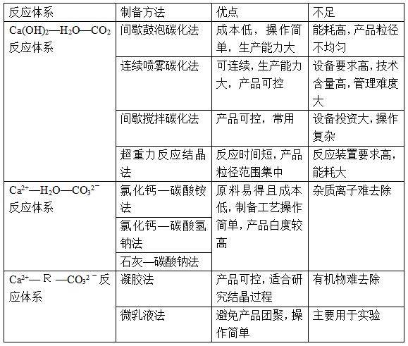 轻质碳酸钙的制备方法以碳化法和复分解法为主,此外还有微乳液法、乳状液膜法和溶胶凝胶法等,各种工艺都可以生产不同晶体形貌的碳酸钙。
