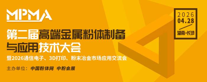 为推动金属粉体材料从“有”到“优”、从“制造”到“创造”的跨越,由中国粉体网主办的第二届高端金属粉体制备与应用技术大会 暨2026通信电子、3D打印、粉末冶金市场应用交流会将于2026年4月28日盛大启幕,大会汇聚业内智力资源与产业力量,旨在搭建一个高层次、全方位、务实高效的交流平台。