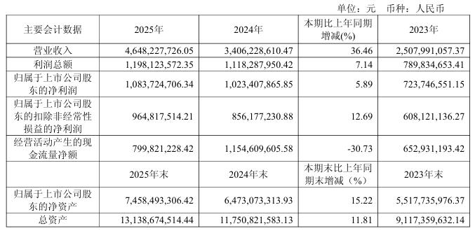 中国粉体网讯 近日,华海清科股份有限公司(简称“华海清科”)发布2025年年度报告,2025年营业收入同比增长36.46%达到46.48亿元,利润总额同比增长7.14%达到11.98亿元;归母净利润同比增长5.89%达到10.83亿元,扣非归母净利润同比增长12.69%达到9.64亿元,利润增长主要系公司本期营业收入46.48亿元,较去年同期增长36.46%。
